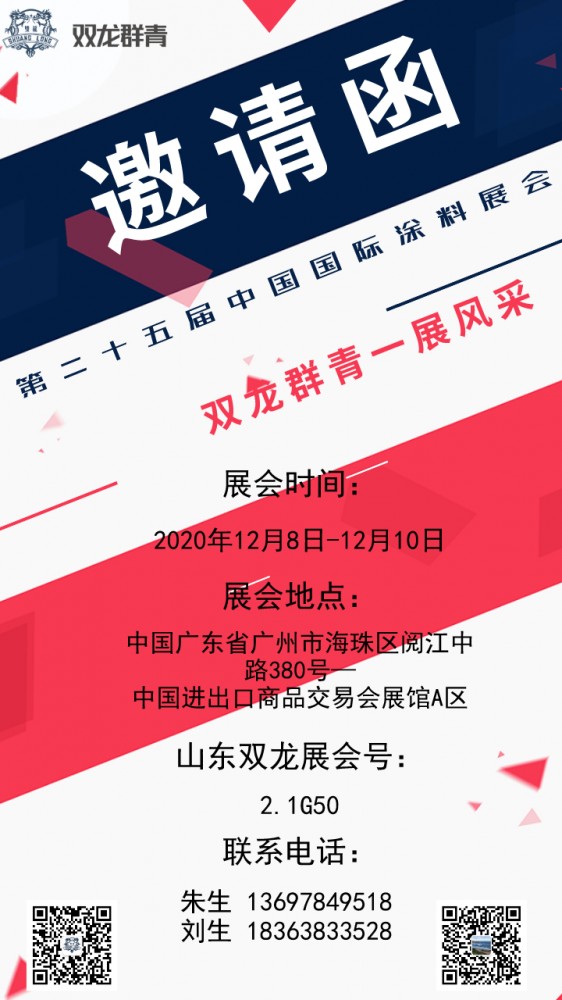 山東龍口雙龍化工將攜明星產(chǎn)品雙龍群青亮相2020中國國際涂料展歡迎各界朋友的持續(xù)關(guān)注!我們一起共同期待本次展會的精彩呈現(xiàn)!![]()
